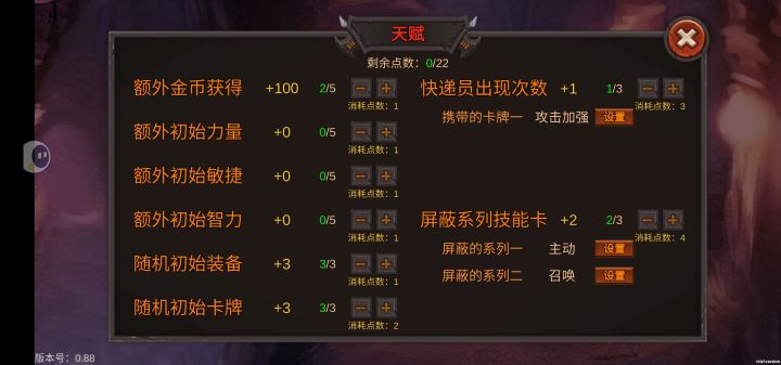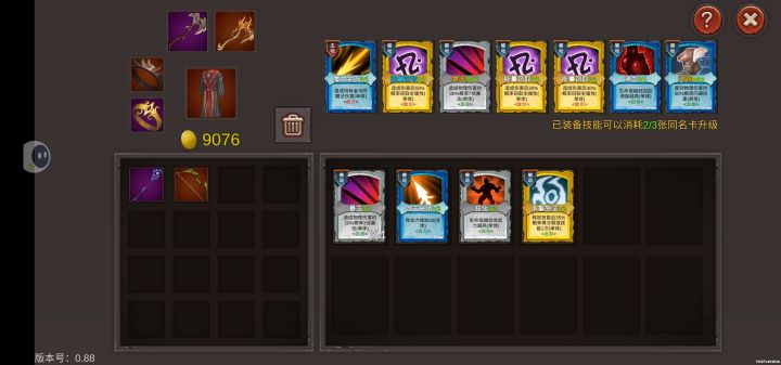 这游戏垃圾卡很多的,萌新只要知道拿这些牌就可以稳过源初。1. 前期输出卡:第一张图挑一张,火球和连珠火球都可以用,刚开始很缺蓝,拿一张回蓝光环过度很舒服,后期智力高了回蓝跟上后可以删了,富裕前期可以带一张,卖装备会多很多钱,钱多了之后删掉。2. 生存卡:魔力护盾和群体庇护选一张,前期捡到的防御卡也可以留着,打不过boss就放进技能栏试试,群体净化留着对付毒boss。但这游戏好像和月圆之夜一样有