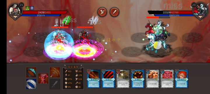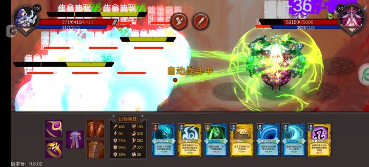 本来想出攻略的,但关卡有“删除随机一半卡牌”的限制,想组一个固定的卡组可谓难上加难。直到后来发现,装备的技能词条好像没被限制,完全可以围绕单卡+装备技能做文章。于是【能量窃取】和【火焰护身】脱颖而出了。毫不夸张地说,这个组合打什么怪都是脚打,随便补张输出都是乱杀,什么机制什么数值那都是浮云。如图,我这个卡组没有起防卡,但这源初boss连受350%伤害的镜像血皮都刮不掉,究竟谁是boss呀(战术
