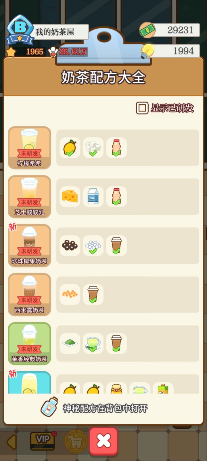 终于把配方搞齐了,发个帖许愿这次旅行出牛油果,就剩最后一个配方还没研发。按图鉴顺序,一张图一个奶茶分类。不知道能不能看清。