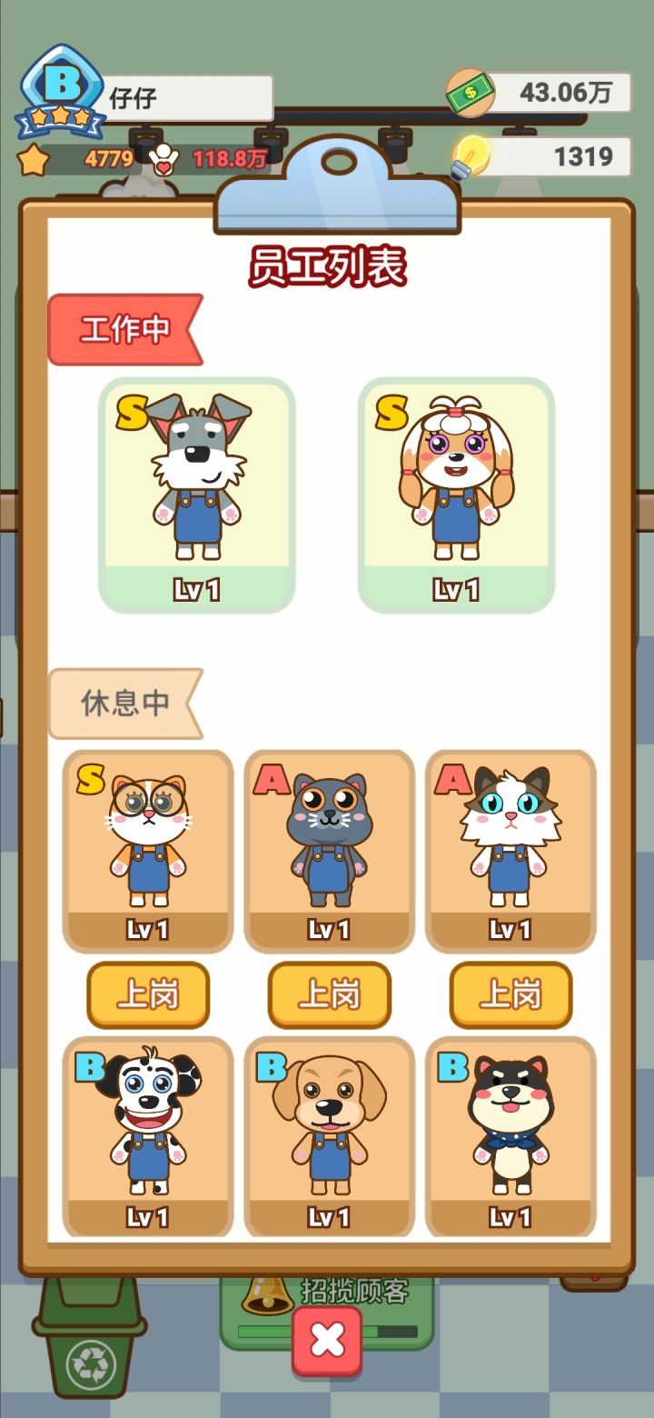 切换低级员工吼卡了一下所有员工全变一级,希望可以改下bug,顺便可以的话回个数据s级升级也挺干的