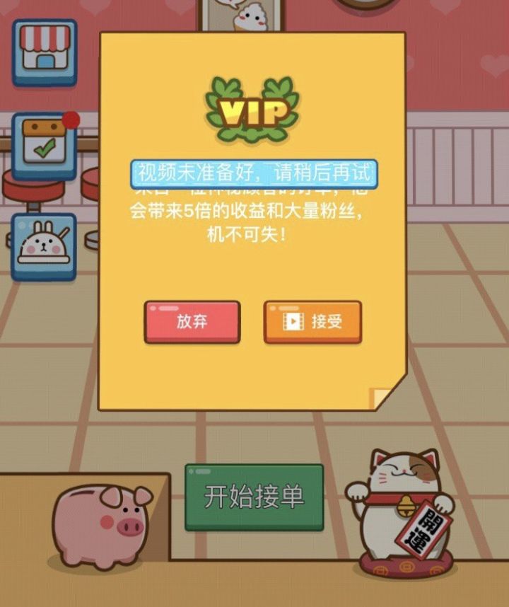 画风不错的,简单易懂打发时间但是一次奶茶钱最多一百几十,看广告就五百+,翻倍也要看视频,收支不平衡,买家具也贵,小本经营。总结:若想打造网红店必须要资本(看广告)