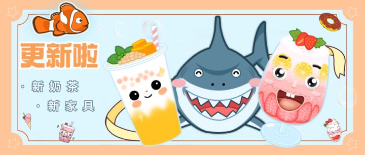 店长们~ 大家好呀~我终于带着更新走来啦~ヾ(≧O≦)〃嗷~❀❀❀本次更新内容❀❀❀🍹新增奶茶这次新增了二个奶茶系列:思慕雪、椰奶西米露;每个系列都是美术小哥哥呕心沥血的佳作,炒鸡好看(♥∀♥),炒鸡想喝!实力满足收集控的店长们~下图随机隐秘了几杯奶茶,等店长进店研发解锁哦~🏡新增家具这次我们将奶茶屋开在海底了哦~ 有美丽的美人鱼,凶猛的鲨鱼,惊险与美丽共存,在此也呼吁店长