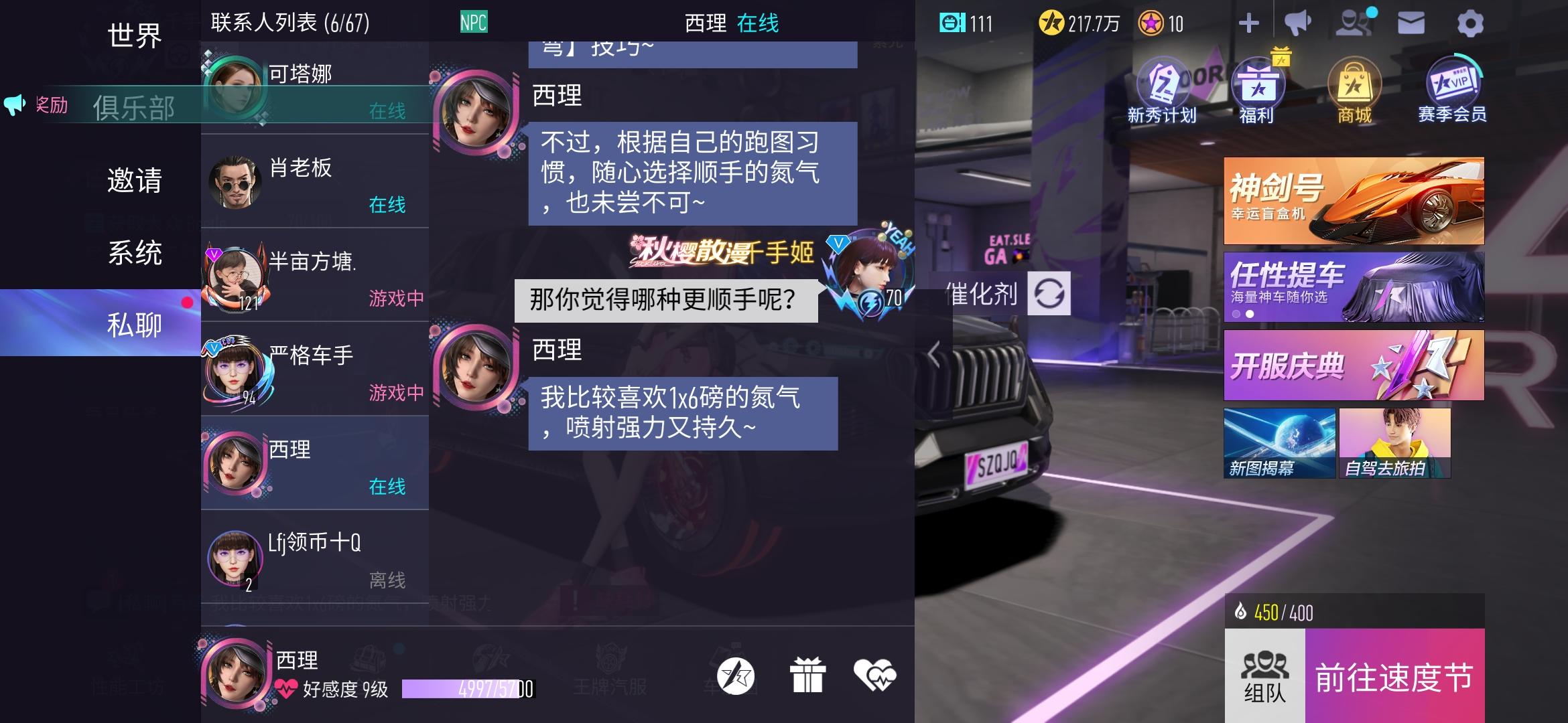 前期还是能获得很多竞速位的车的,如果不想氪金的话七日签到获得的保时捷就可以,但是如果你的禅没有等级特别高且你的漂移技术不够好的话,千万不要用,别人都说禅垃圾,但是我觉得,我在用的时候还是感觉手感不错的。而且禅是比较容易获得的。