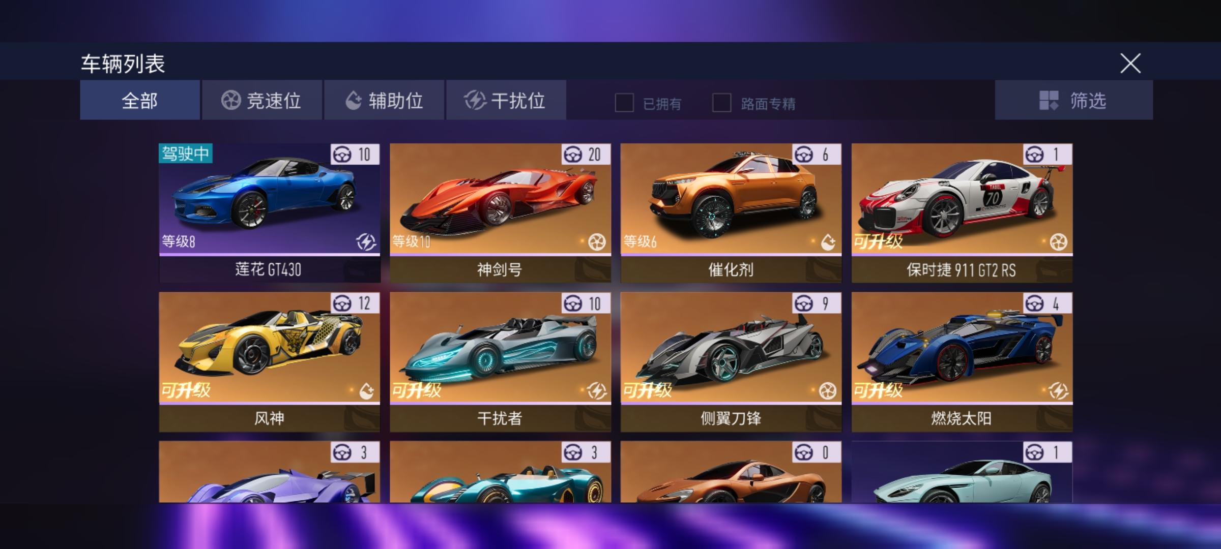 竞速位的车辆先说这么多,这些是好获得的,剩下的萌新自己探索吧。