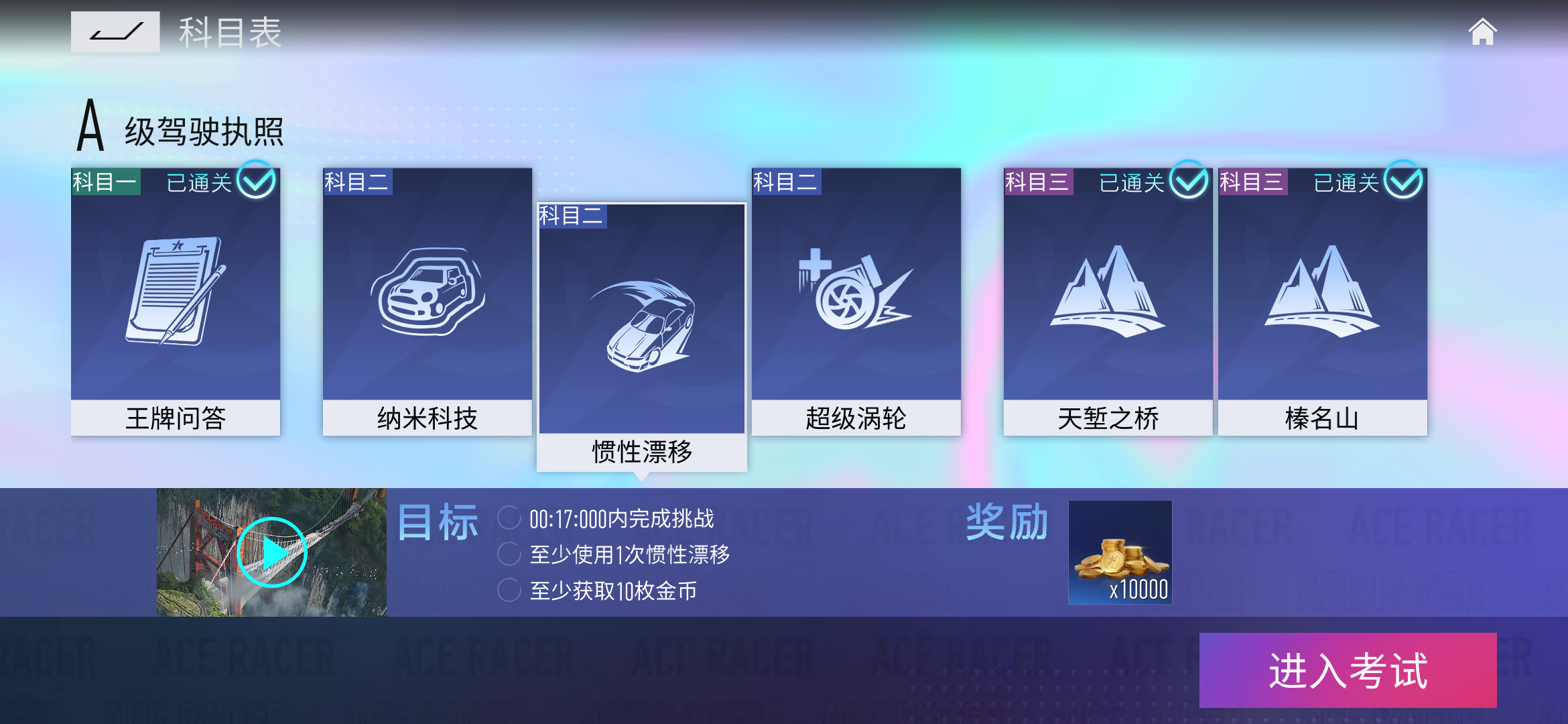 分享一下心得,最后一个科目三榛名山重点是超级涡轮,刚开始没多久有个山洞漂移进山洞用超级涡轮,漂移出山洞也用超级涡轮,还有最后的几个大弯道。处理好超级涡轮时间卡在最后零点几秒过应该不是问题。(超级涡轮的教程驾驶指南里有),少装墙。氮气配置带3×2磅氮气。没有等级高的传说车也没事,阿斯顿马丁也能过。下面是我用的芯片配置