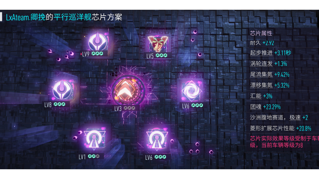 视频的巡洋舰是八级,封面芯片仅供参考,此跑法仅供不会莲花这种车的参考。多跑跑你也是靓仔。
