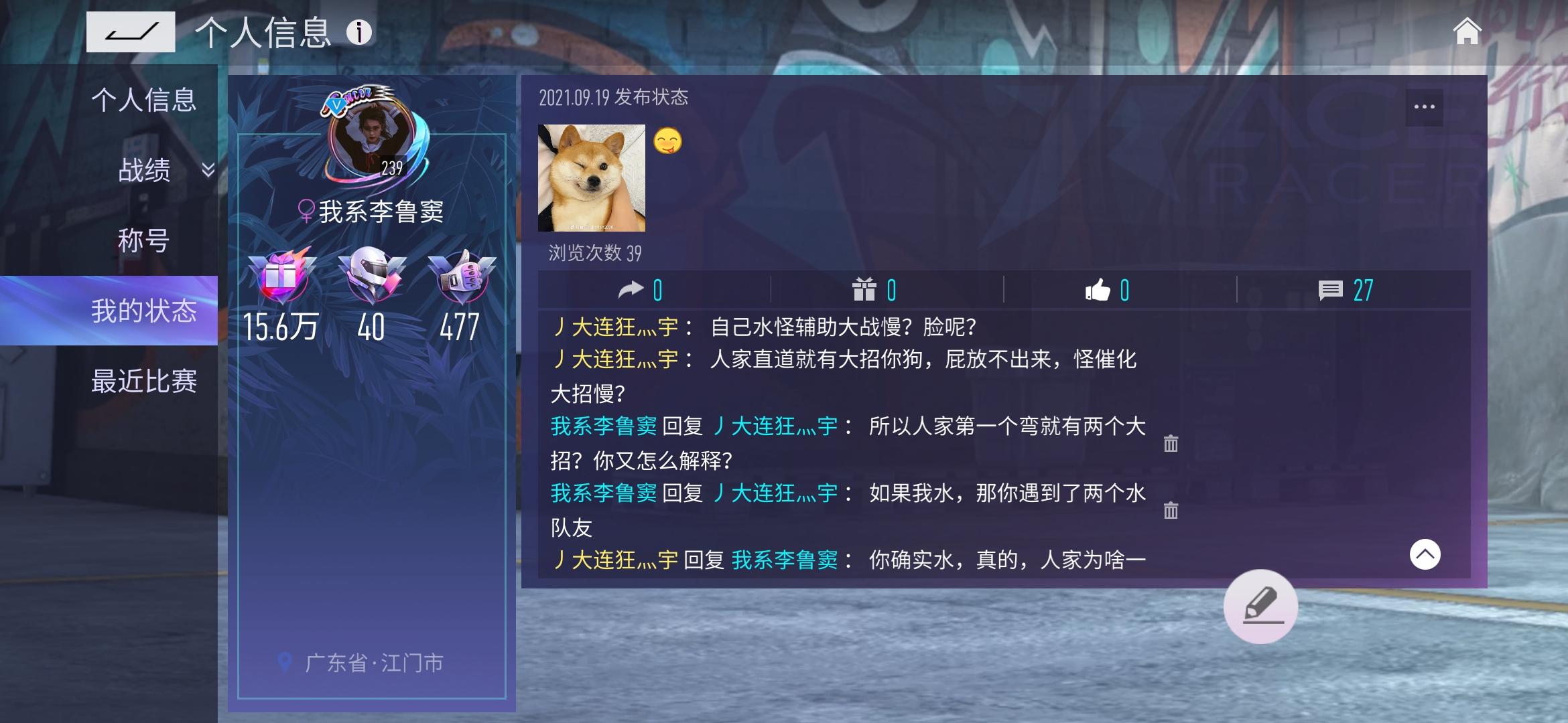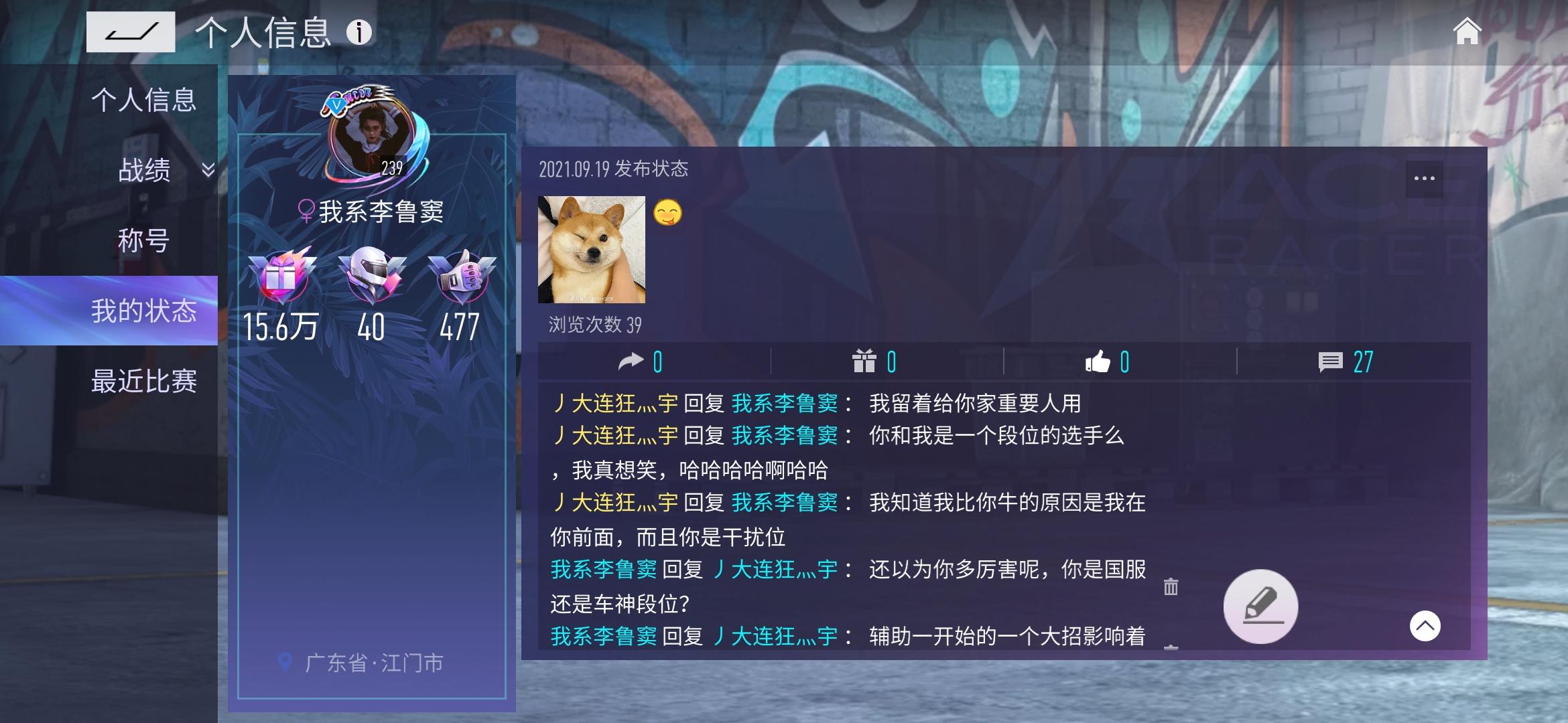 个人赛能不能禁止干扰参与?太崩心态了啊,都不玩干扰就他玩,氪金车冲得快冲前面去了,我们这些平民就在后面被他拖着,我本来快上国服了这些干扰让我掉了300分,我真是心态炸了啊,我好想说脏话啊。