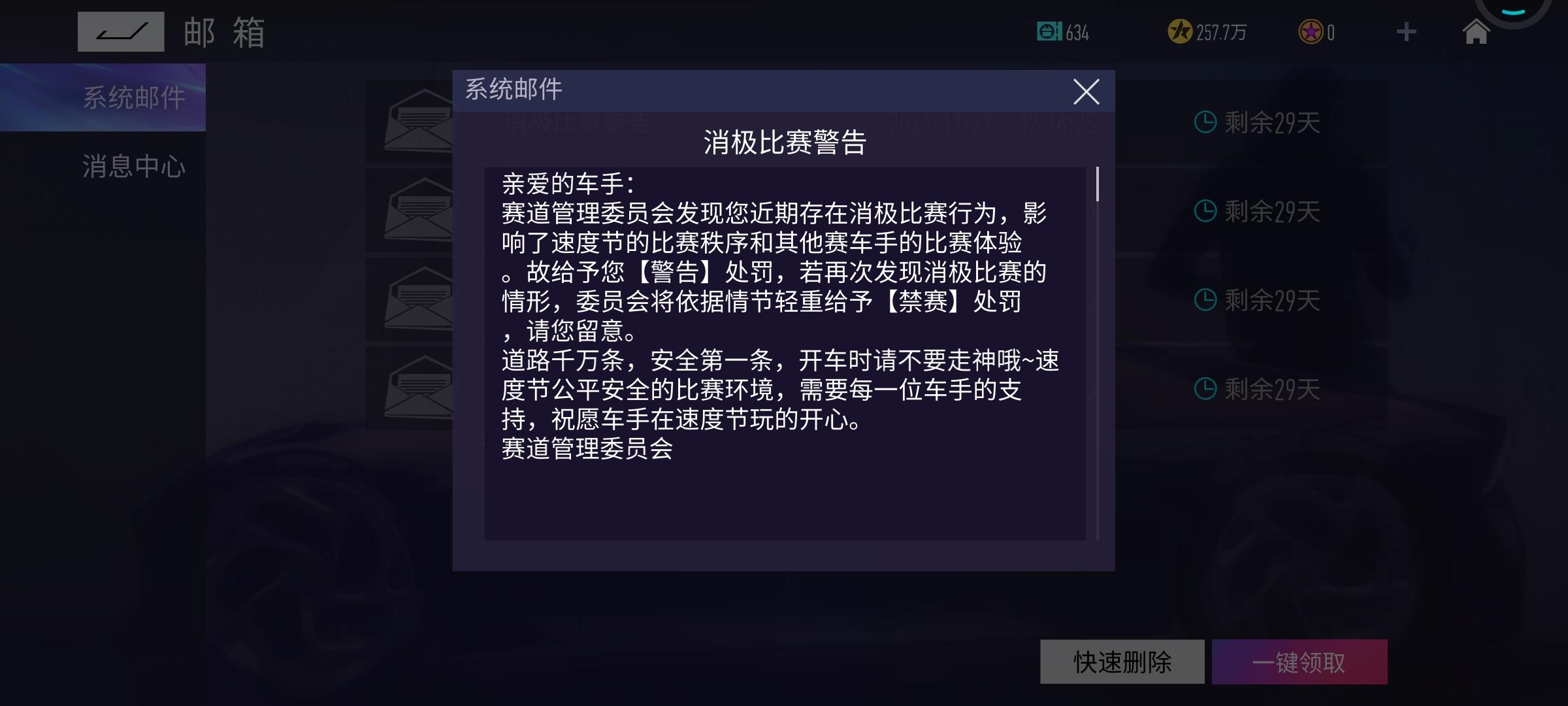 这是什么意思啊消极比赛,那里消极了??不行差我名词啊,第四也消极??关键我玩的辅车,团队赛还赢了,就把我好给禁赛了?