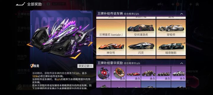 下一辆补给兰博基尼埃文塔多,现在正服抽奖界面已经可以看到了。下个珍宝马丁女武神,下下个珍宝兰博基尼毒药