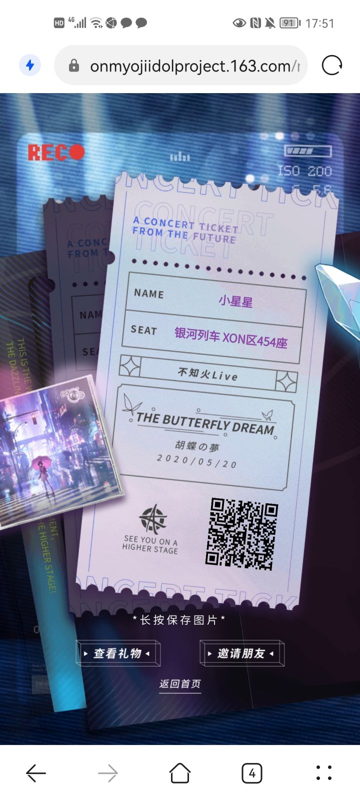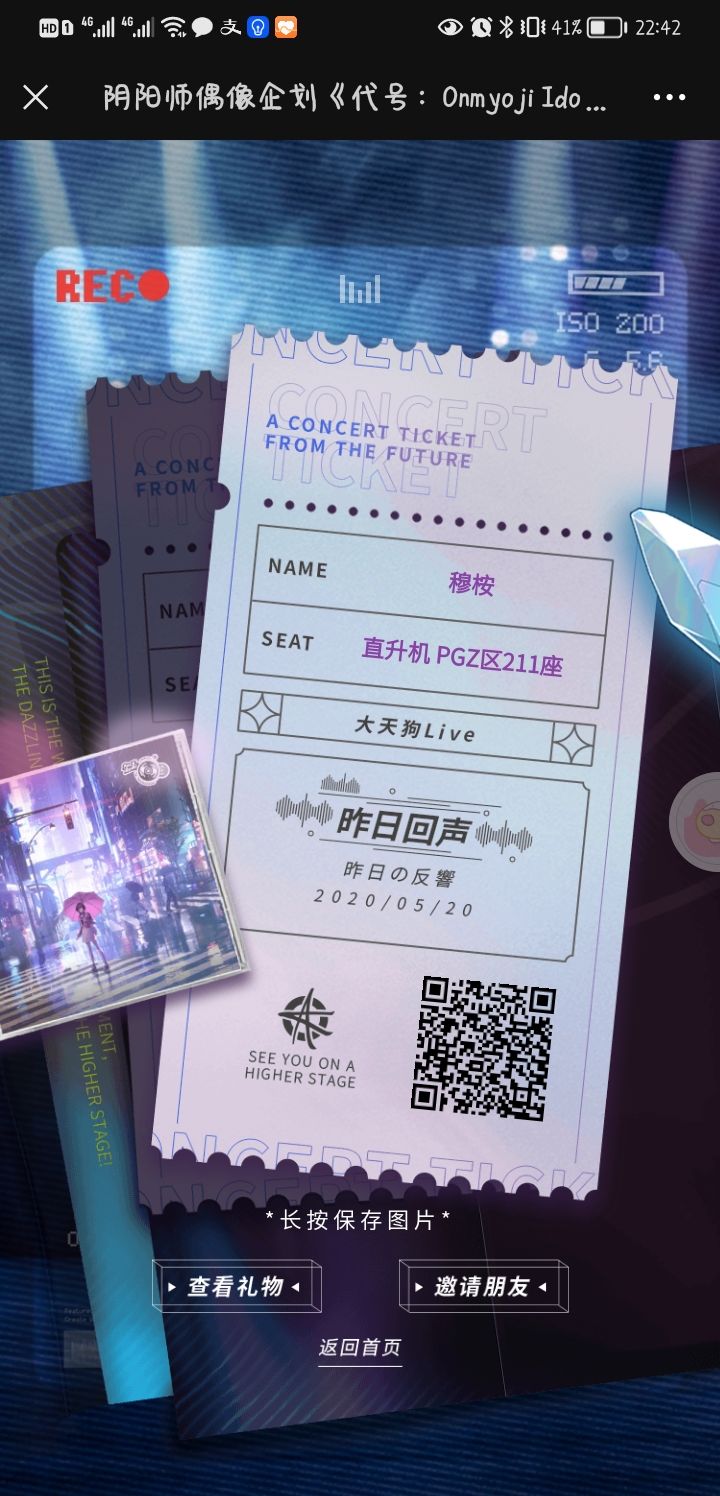 想看阿离的可以直接扫已有的门票的二维码,似乎自己去扫官方的二维码就要自己拉人(血的教训)(。•́︿•̀。)
