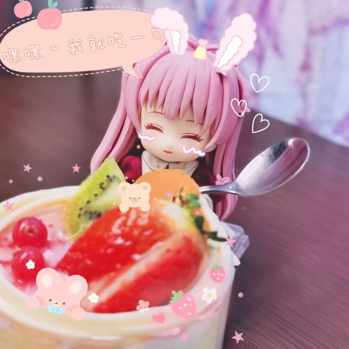 「嗯~~?是爱丽丝们最喜欢的变美变强蜜果子~?」「好好吃的样子(¯﹃¯)」「一勺!我就只吃一勺!٩(๑>◡<๑)۶ 」