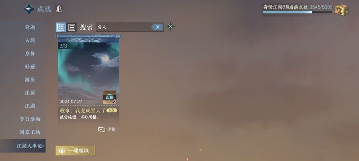昆仑虚探索,隐藏成就【救命,我变成雪人了】解锁攻略随便找个有雪的地方挂机,让自己变成雪人只需要重复三次,让自己三次变雪人,就可以解锁成就了#游戏种草计划 #逆水寒手游攻略 #逆水寒手游 #游戏推荐 #游戏日常