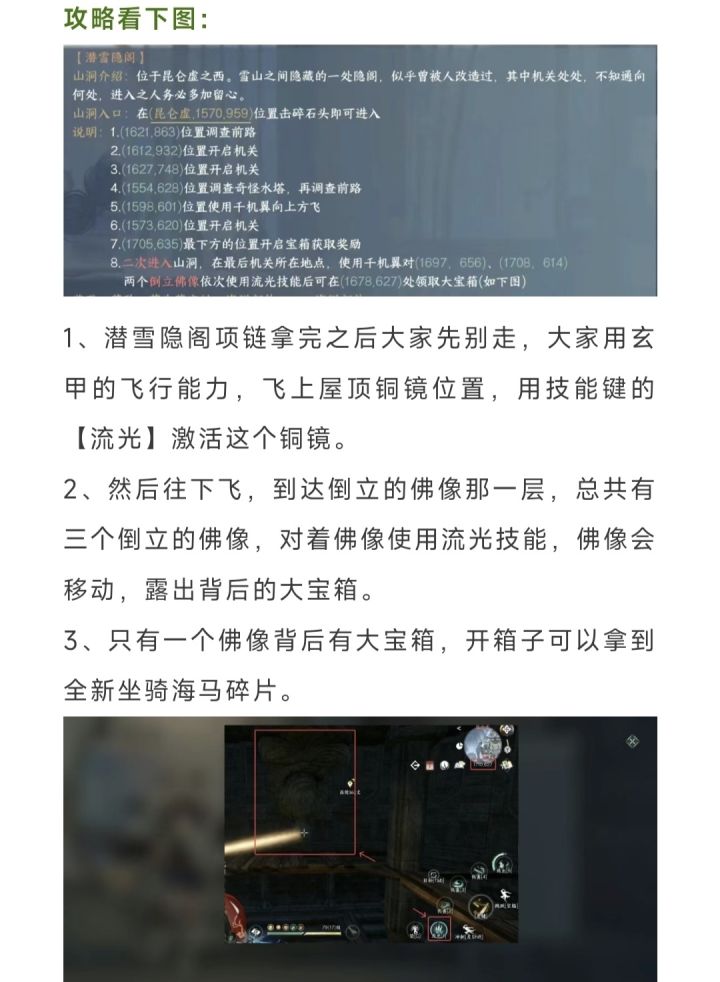 昆仑虚隐藏探索,潜雪隐阁拿佛像背后隐藏海马碎片