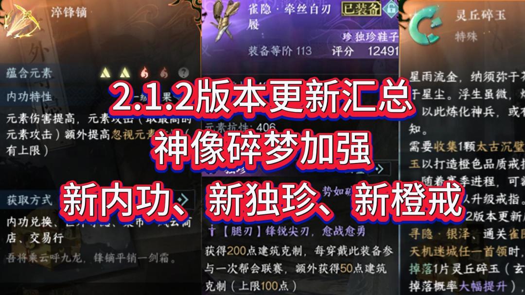 2.1.2版本更新汇总,神相碎梦加强,新内功、新独珍、新橙戒