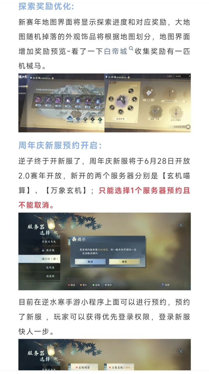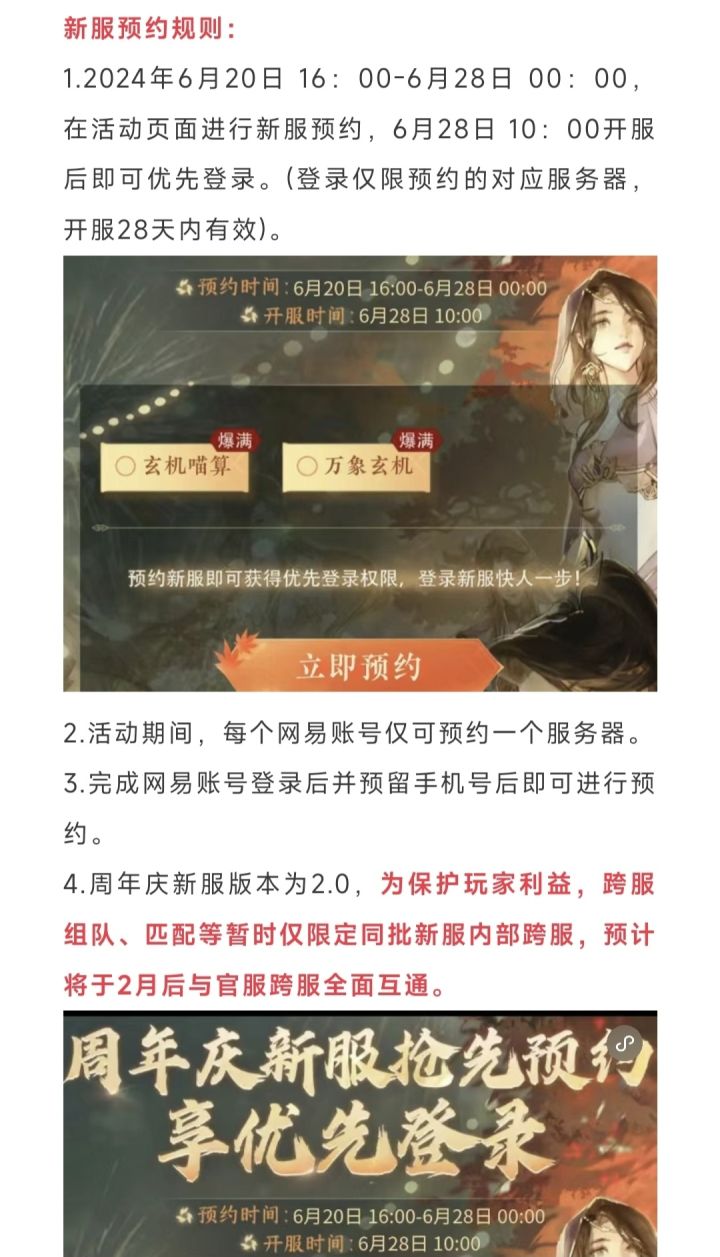 逆水寒手游周年庆新服预约开启,新服预约须知