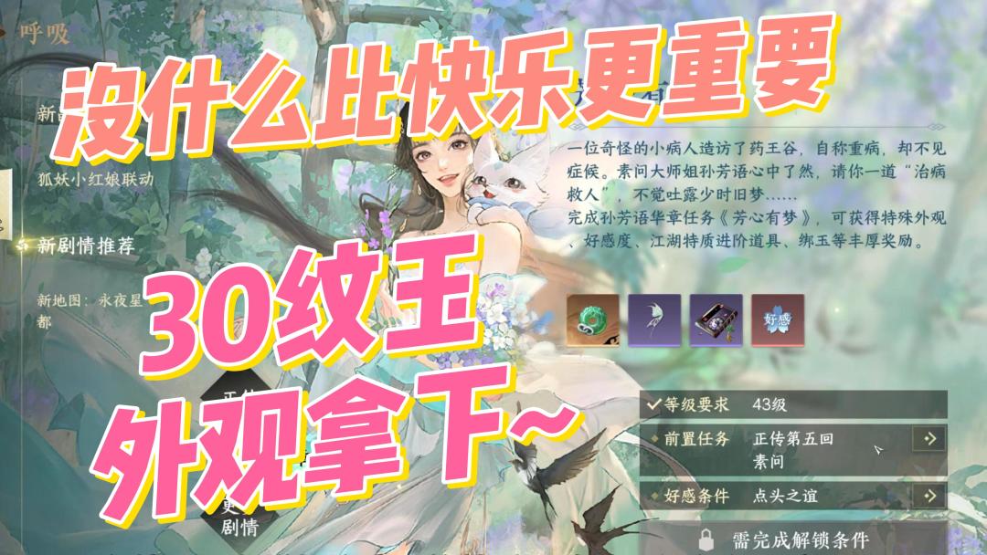 30纹玉外观拿下,素问大师姐华章任务开启,最后一定要快乐哦~