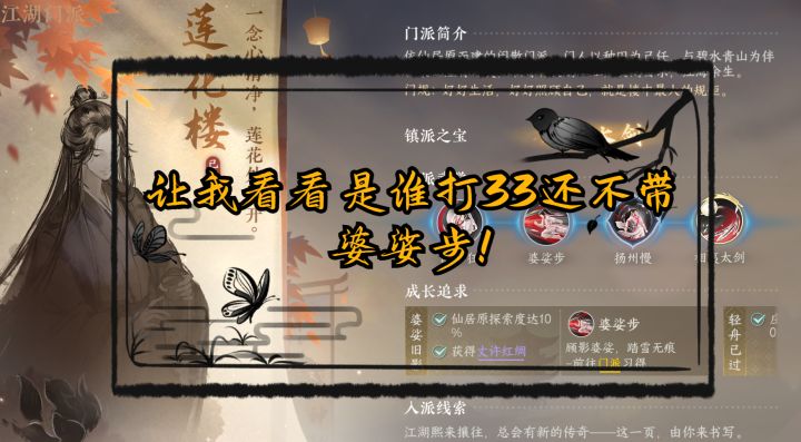 莲花楼的门派技能在33里究竟有多离谱!