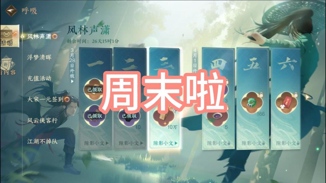 周末啦,秘境宝库记得开,副本次数别浪费,帮会联赛别忘啦~
