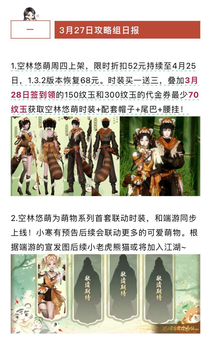 本周四新联动来了,本次逆水寒联动《小熊猫》,首款时装【空林悠萌】#攻略#游戏安利#逆水寒手游#逆水寒手游攻略#逆水寒手游公测攻略