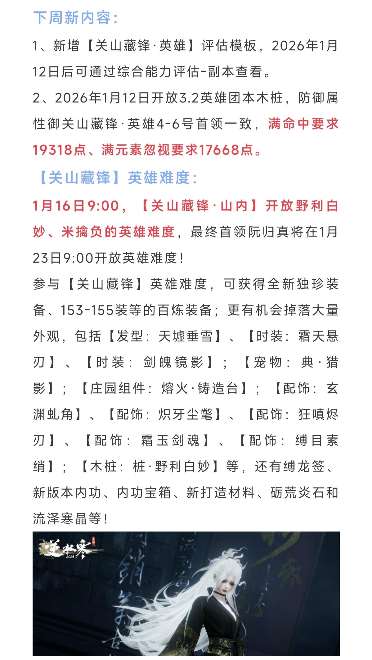 逆水寒手游本周五英雄难度【野利白妙】机制前瞻,