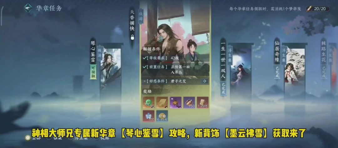 神相大师兄专属华章【琴心鉴雪】攻略,新背饰【墨云拂雪]