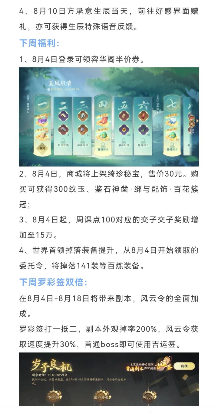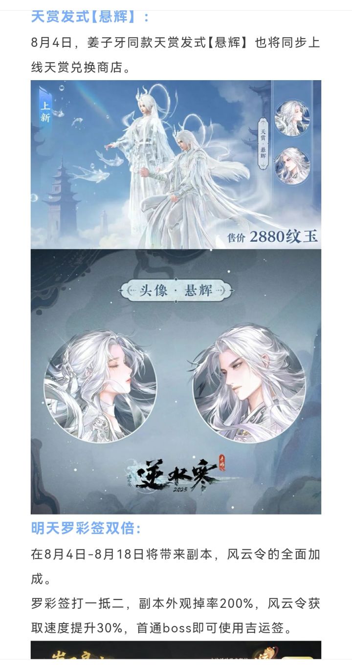 逆水寒手游明天罗彩签双倍活动上线,白发掉落翻倍,罗彩签双倍