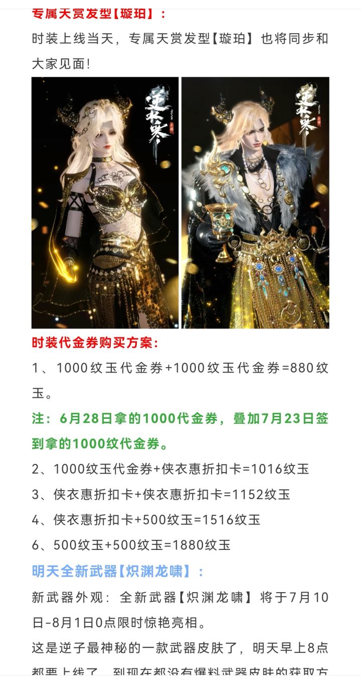 逆水寒手游明天新时装入手仅需88块,明天288块新时装金筹曜夜