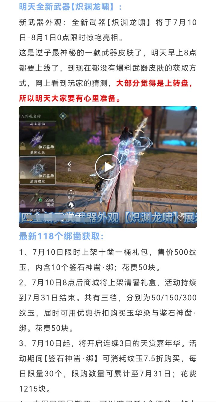 逆水寒手游明天新转盘绝品武器展示,新转盘奖池一览