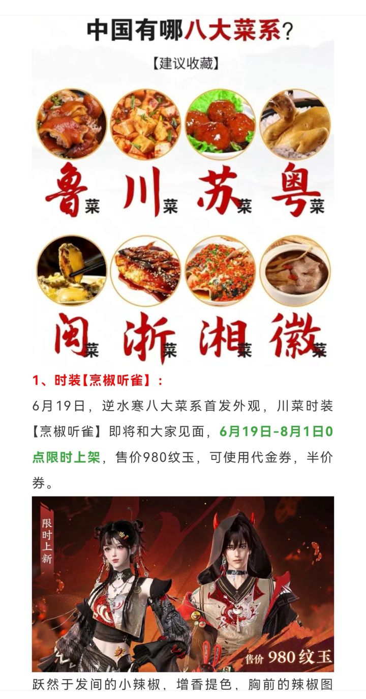 逆水寒本周四98块新时装建模展示,川菜时装烹椒听雀,川菜主题