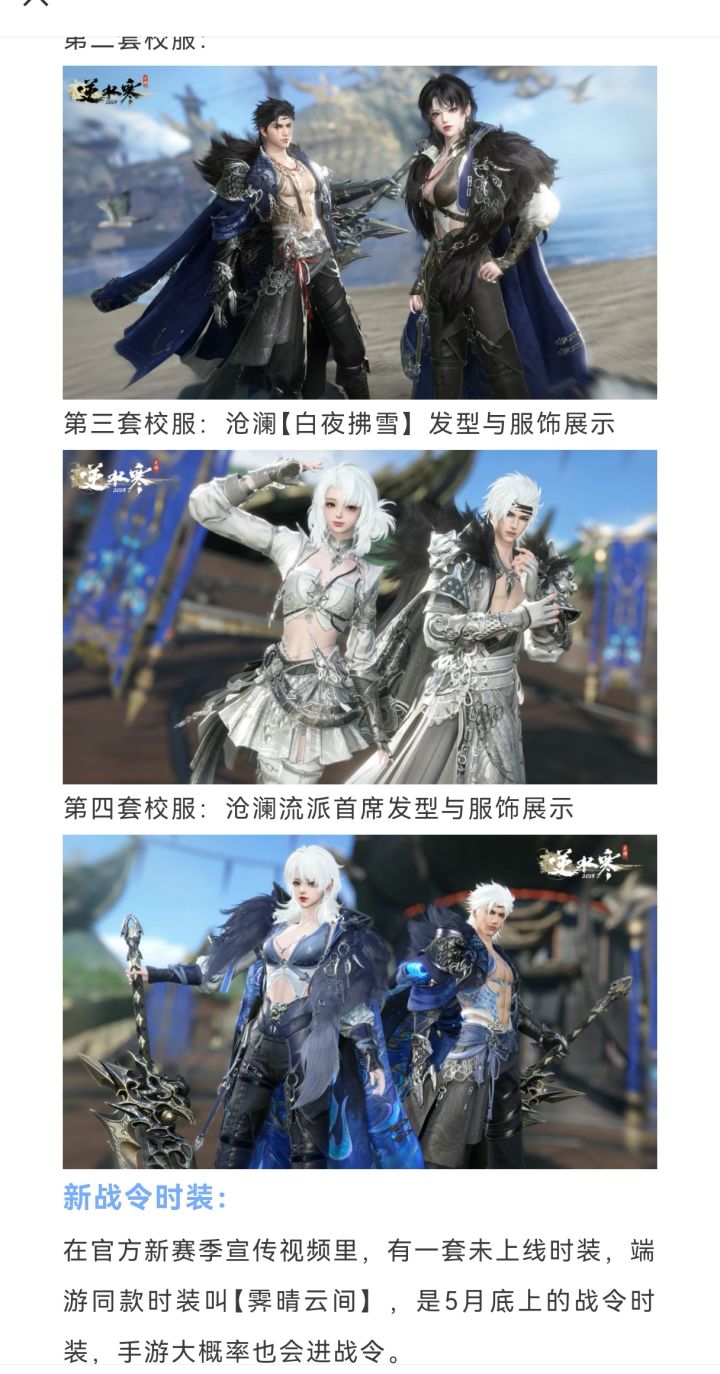 逆水寒新职业沧澜4套校服展示,沧澜校服,沧澜校服舞阳白发,