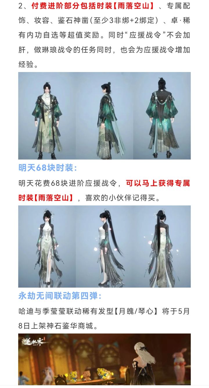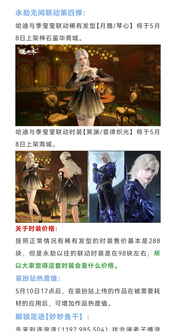 逆水寒下周四288块新时装冥渊/音律织光,永劫五金联动时装,