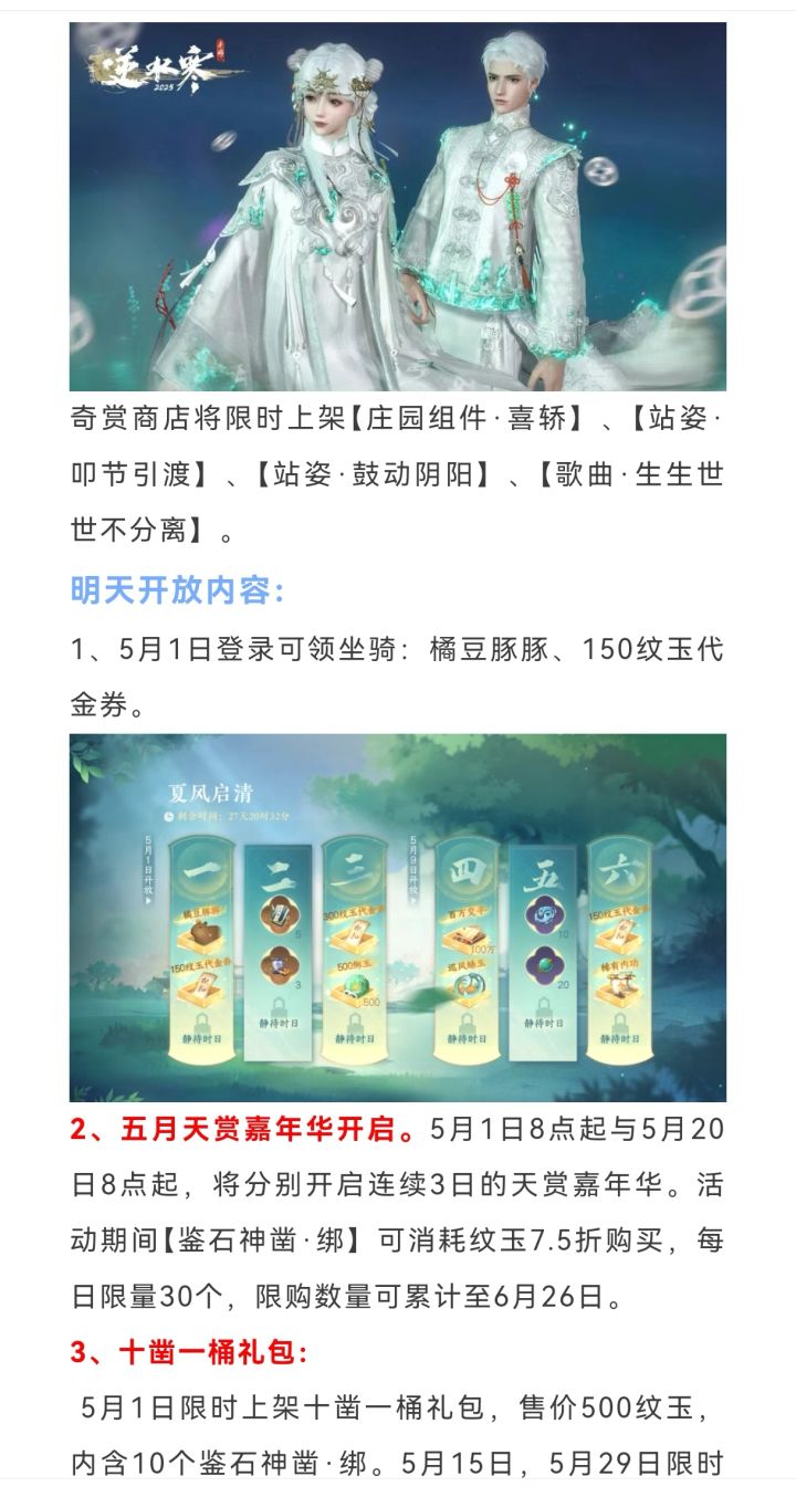 逆水寒下一个时装礼盒,520时装,新时装礼盒爆料,时装礼盒暗蔷