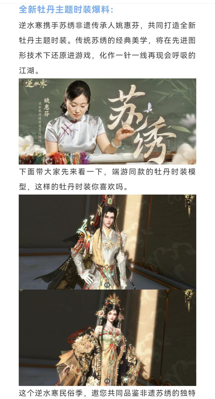 逆水寒全新牡丹主题时装抢先看,逆水寒携手苏绣非遗传承人姚惠芬
