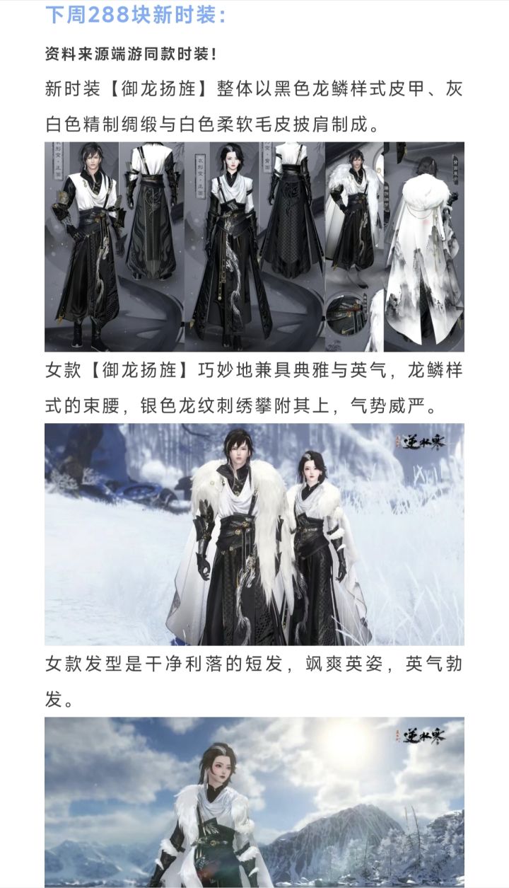 逆水寒新版本6套外观合集。御龙扬旌时装,