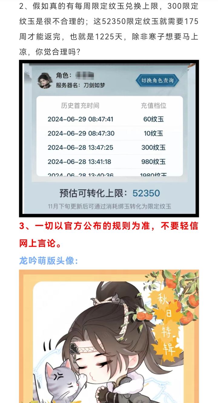 逆水寒下周限定纹玉返还每周限额兑换300限定纹玉?