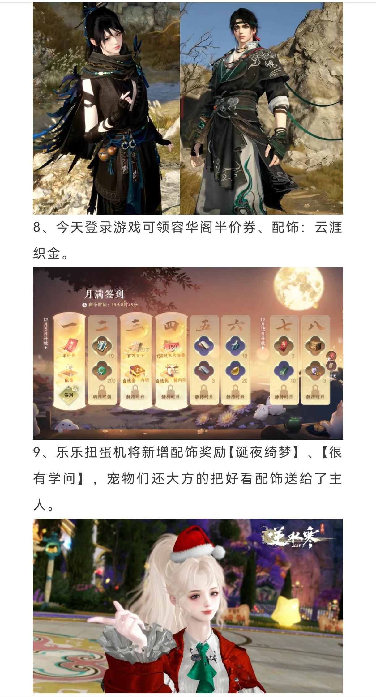 逆水寒手游今天版本更新,所有免费奖励领取指南,免费新时装朔漠谣,免费坐骑流鳞点墨,免费坐骑螺螺江洋大盗,免费坐骑乐回旋、疾速猪猪、风行兔飞猛进,免费时装易水藏锋/墨月归鸿,新增配饰奖励诞夜绮梦,免费坐骑魂斩黄泉!#游戏种草计划 #逆水寒手游 #逆水寒手游攻略 #游戏推荐 #游戏日常
