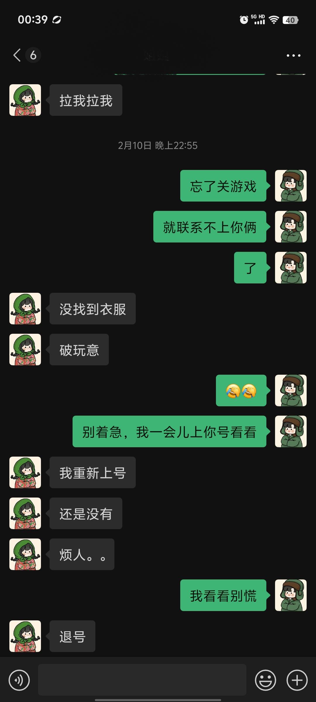 2024年2月10日22点45-55分,打完舞阳城六尊使15次保底罗彩签,爆了白夜拂雪和黄泉砂,白夜拂雪在背包和外观里都找不到。我对象上我号也看不见,然后反馈完bug告诉我查不到副本记录。和我对象聊天记录的时间就在那摆着呢,难道要我精确到几分几秒打本的?以后每次打本出外观难道都要我截个图?万一没到背包里用来反馈问题证明我的清白?转人工客服也是假的。转进去也是ai客服,真烦啊,哪位碰见过这种情况的侠
