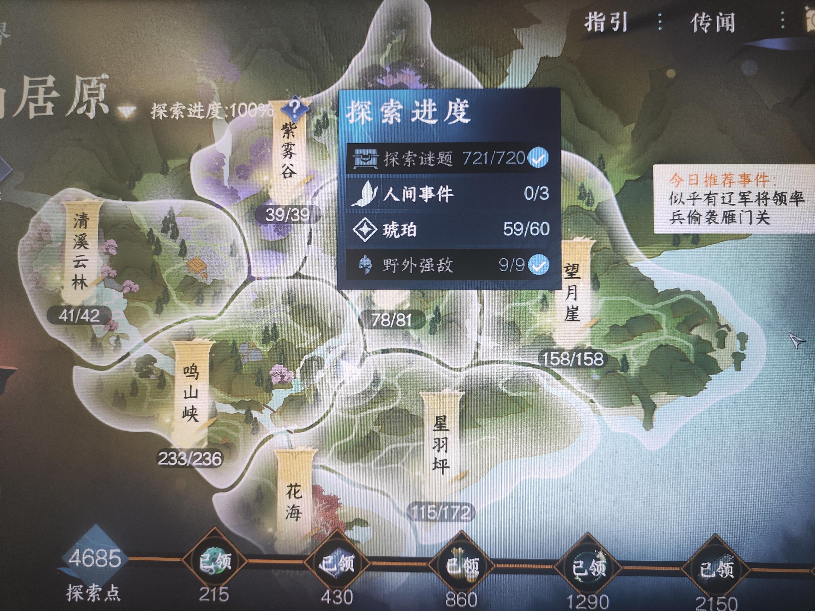 比如紫雾谷的探索绝不止39个,星羽坪不可能有172个,总数720也对不上,我都721了,还有没找到的探索,数据根本就不准