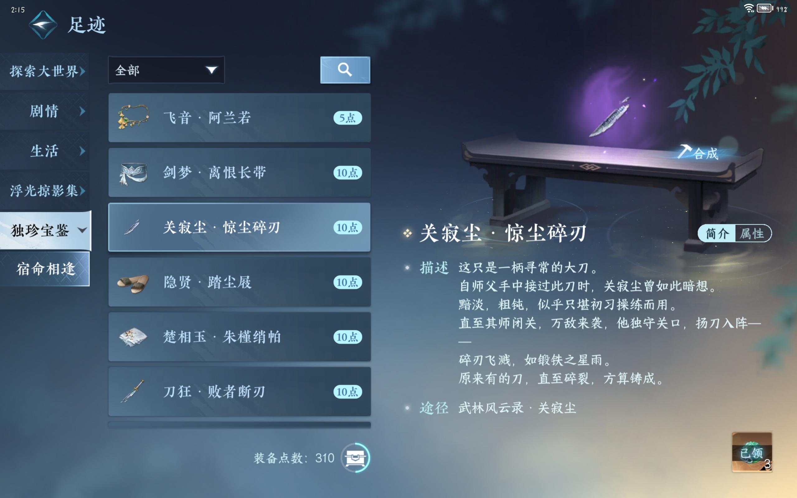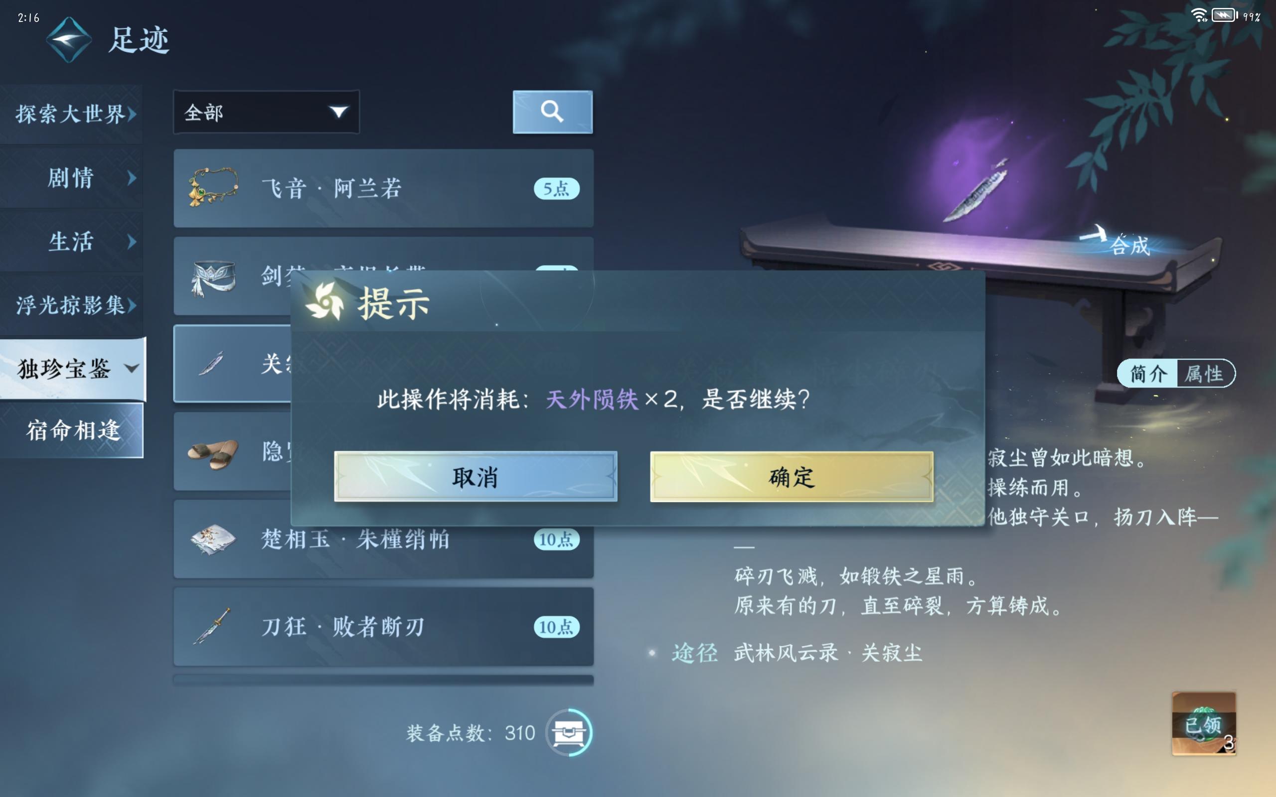 不小心分解了关寂尘这把刀,想找回合成但是没反应