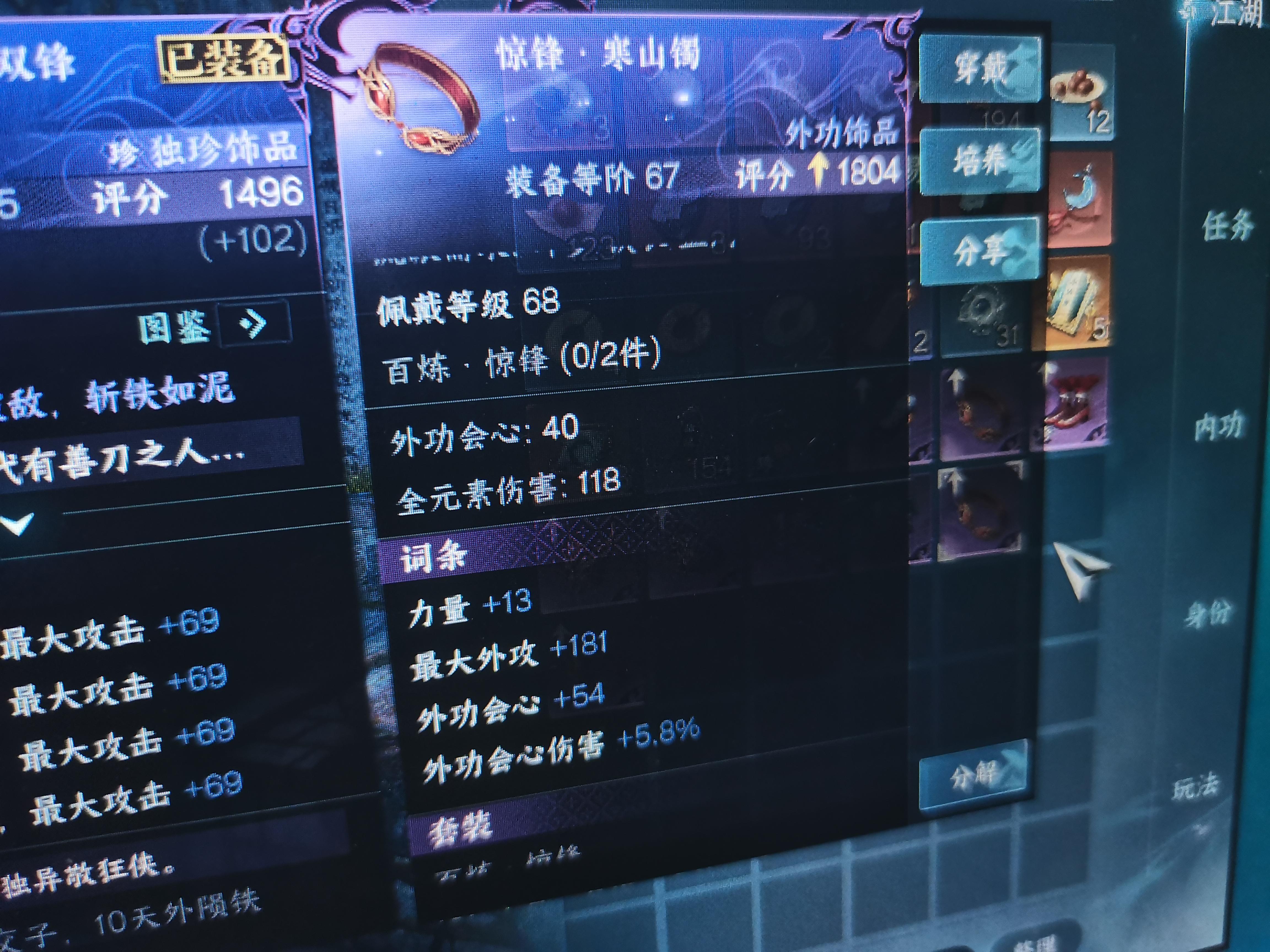 如图,这个镯子是我在更新前买的,另外还有个67腰带,百炼装备我一直留着,所以我很确定商店买的装备没有被分解的可能。明明有退换次数,但就是不给退。我朋友在更新之前打五羊掉了新装备,结果原本已经没有退换次数的装备突然可以给他退了,怀疑是bug。然后在更新之后新增2次退换次数,他换71装又退了两次。咋的?搞特殊?就我不给退?我还专门新买了个67看看能不能退,结果还是退不了以前的。本来入坑就晚,这