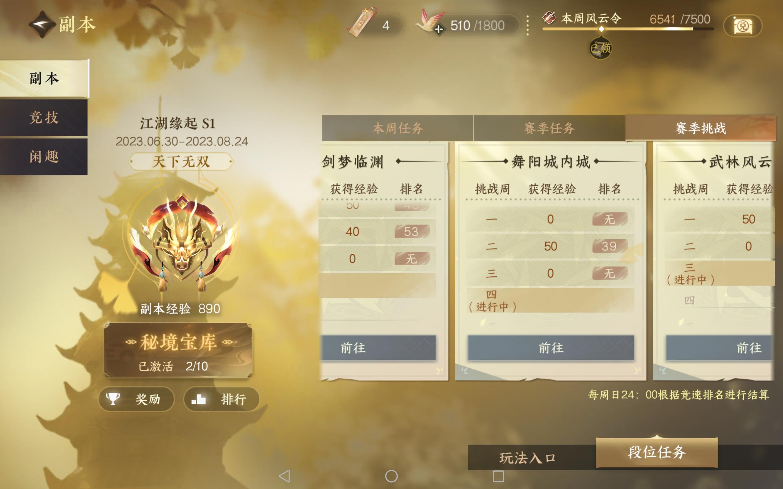 如图,上周我的三个副本挑战榜都在前五十,按照以往记录是50胜点一个榜,但是为何本周结算了三个榜都没有统计到我的排名奖励?贴图证明上榜,因为之前没注意,已经把本周剑梦和风云录打掉了,本周内城还没打,速通记录是上周的,没有给结算胜点奖励。已经从本服第6掉到14了,这是不是别人没有被吞掉胜点奖励?有客服给解惑一下吗?