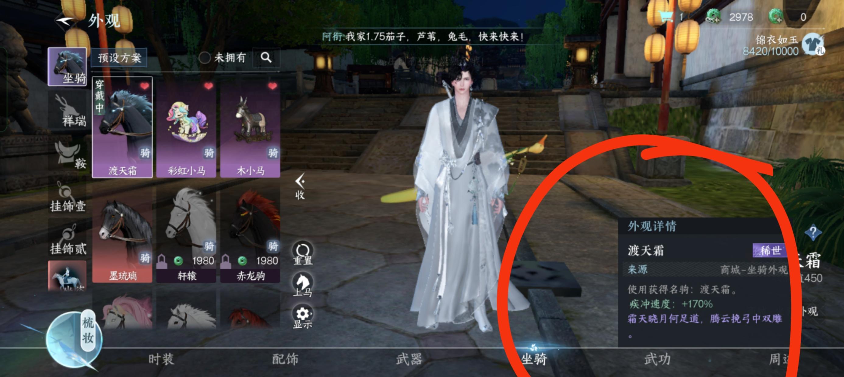 商城里看详情有疾冲速度 骑上去实际没有 坐骑里看也没有 我一开始以为是不显示 直到我看了霜天渡有 要么你就退钱要么你就把150疾冲补回来