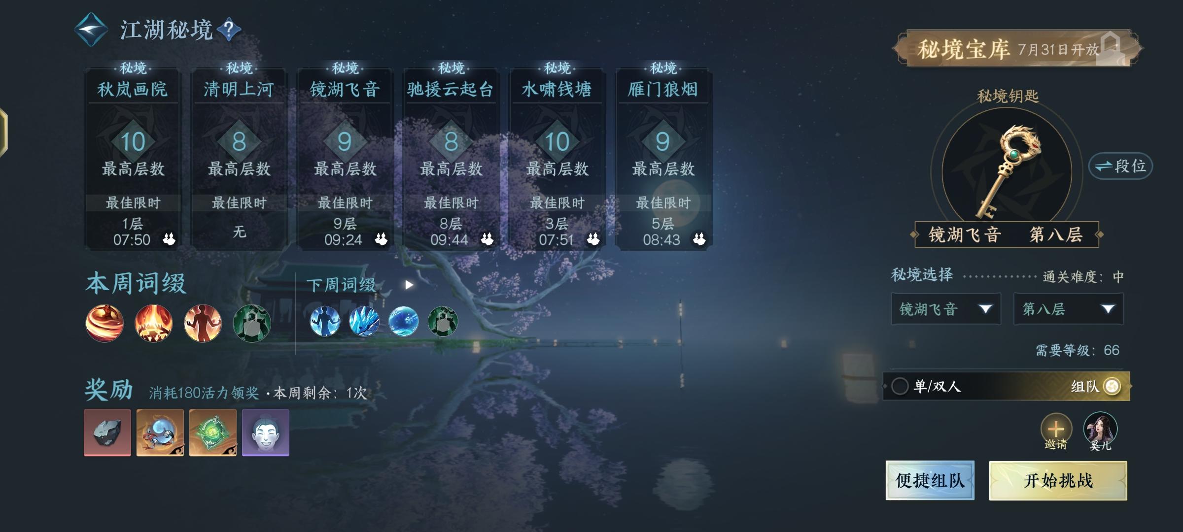 有能力蹭高层钥匙就组队,省的单人打半天还过不去,人机蠢的要死,顺带一提:钥匙刷新机制:当你在限定时间内通过副本上一层或者2层,不看所有副本的最低层数,直接给一个相同的层数钥匙或者是上层钥匙 ,这里是指你蹭的钥匙层数 (十层开始好像有个bug:无限刷梦魇不时会碰到从今天开始的)这也是醉了,昨天还好好的,逆水寒,下线