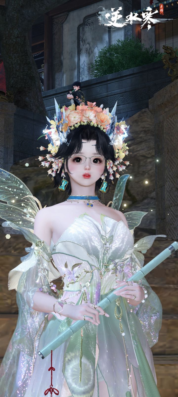 新头饰簪花真好看#逆水寒2.1.3畅玩计划#,最后表演个自刎当场,助助兴