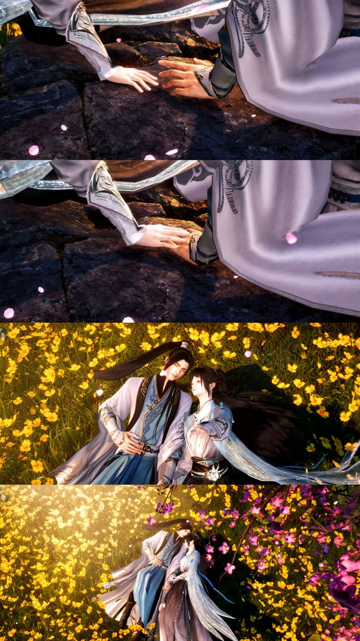 我们俩呀,就像连理树,并蒂花从未分开,早已分不开,也—不会再分开