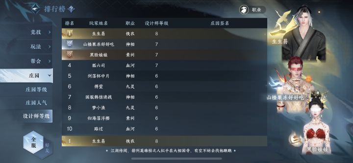 更新作品,清风无量、行宫游园、浮梦天水。链接点进去没有直达作品的,可以右上角搜索庄园名字,下边的红色字就是。B站:观不知1、宫城夜雪2、行宫游园3、浮梦天水今天官方公告来了:1、热度前50庄园模板能上架,现在看,问题不大,目前热度在35名左右。各位朋友都非常热情,我也希望这个排名能保持下去,顺利上架,分享给大家。2、至于定价,官方说定价范围10-9999纹玉,不知道可不可以设为0,