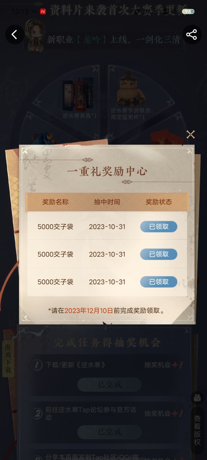 我没玩过端游逆水寒,我是个剧情党,比起装备战力我更在意能引人入胜的剧情,我不知道端游的剧情是不是跟手游一样的,我就觉得剧情就只有心境任务蝶与尘和正传任务雁门关这两段剧情很好,我看上瘾了。所以每次游戏更新我都特别期待剧情,会出现什么新人物,会出现什么新势力,但不论是顾惜朝那段剧情还是这次的龙吟正传,我觉得都很无聊,主角成了纯路人角色,我看着看着都睡着了好几次,这两个剧情我都是快进过的,实际上剧情讲了