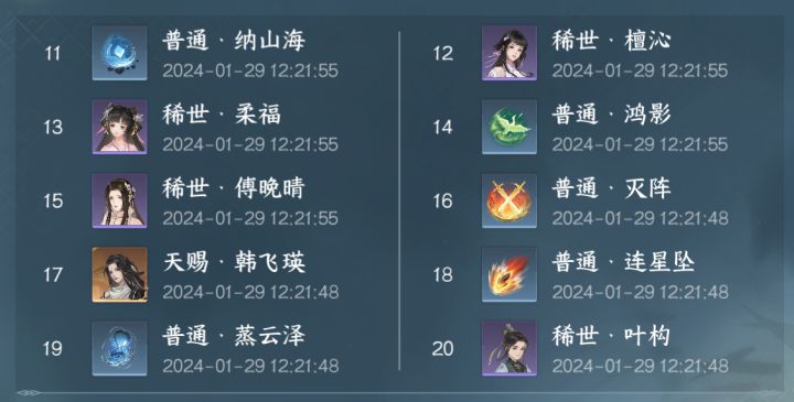 宝库系统出来有多久了?迄今为止就给了一次双抵御的飞舞火日月,全是俯仰太虚万化冥合,内功兑换也是2个俯仰太虚换1个俯仰太虚,这周可好,稀有内功狗粮都不给了,不想让我玩就直说🙃