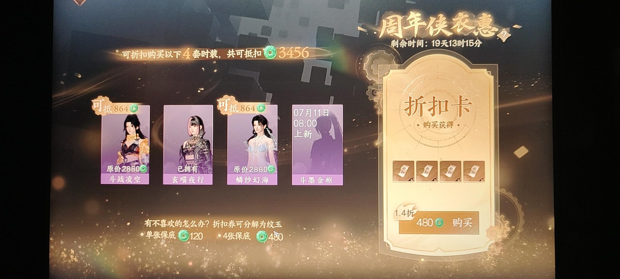 不是?难道就我不知道这个玄喵还有个周年庆折扣券吗?我都买了几天了才发现还有个折扣券能买我服了。。。玩逆水寒大家的嘴都这么严实的吗?