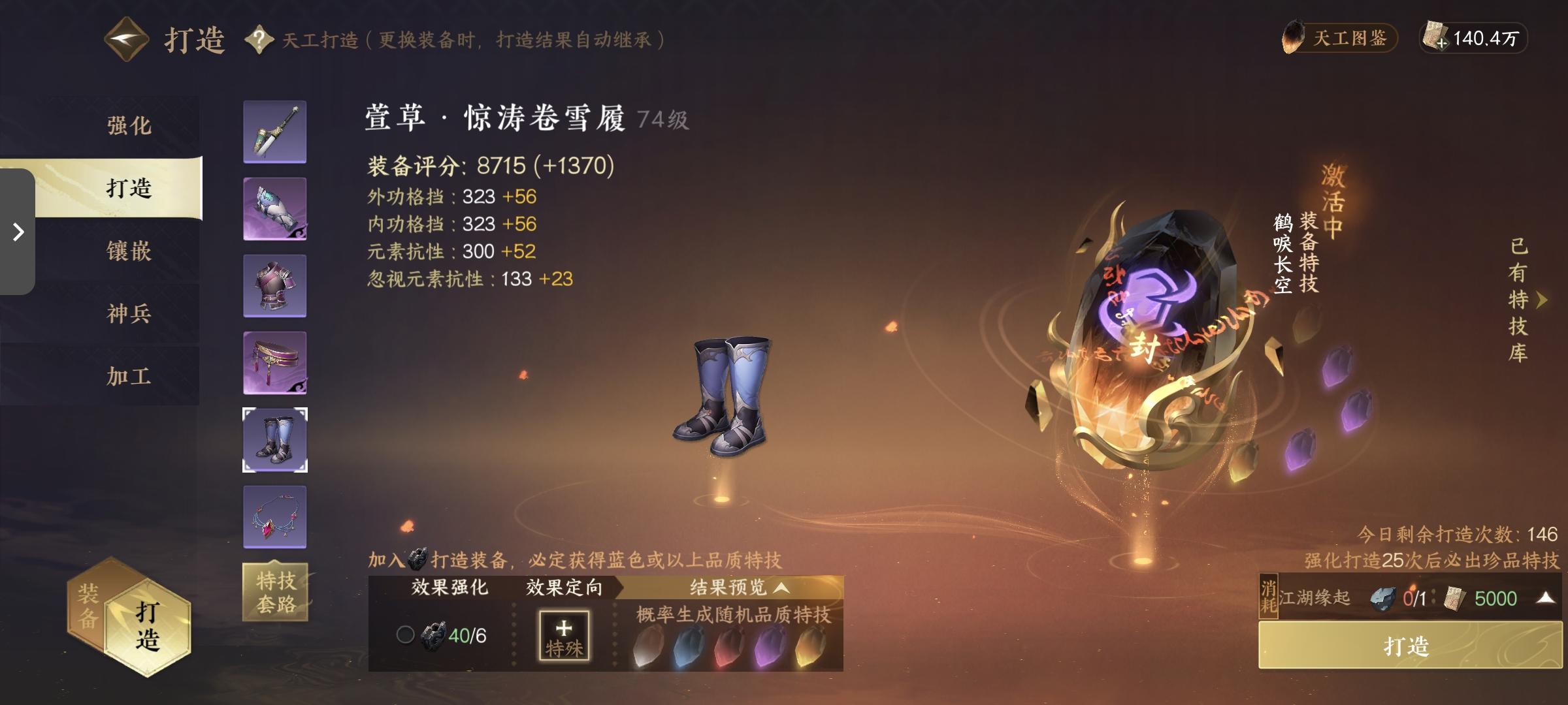 劳斯们为啥现在鞋子打造不了啊?是还没开放吗?我看攻略视频又在推荐这个打造那个打造的